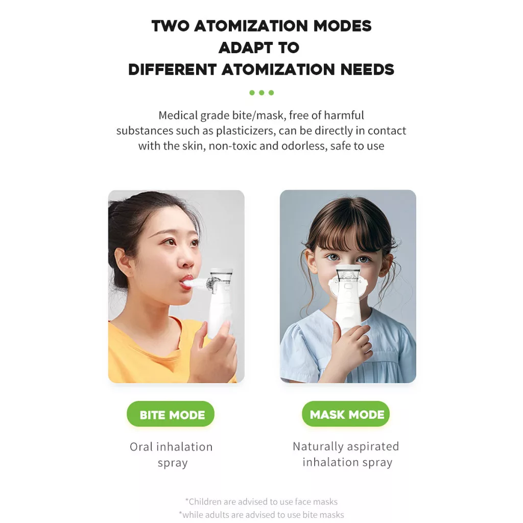 * Ultrahangos technológia: Finom, hatékony porlasztást biztosít a gyors és egyenletes gyógyszer vagy sóoldat légúton keresztül történő bejuttatáshoz.