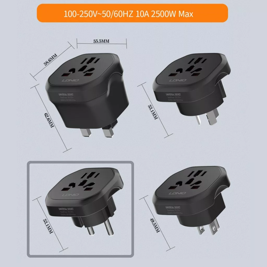 Az LDNIO® Z7 Univerzális Utazó és Konnektor Átalakító Adapter tökéletes kiegészítője minden utazónak és világjárónak. Kompakt és praktikus kialakításának köszönhetően ezzel az átalakítóval használhatóvá válnak az elektromos berendezései és eszközei a világ számos országából. Kompatibilis minden UK, AU, USA és CN szabványú csatlakozóval.