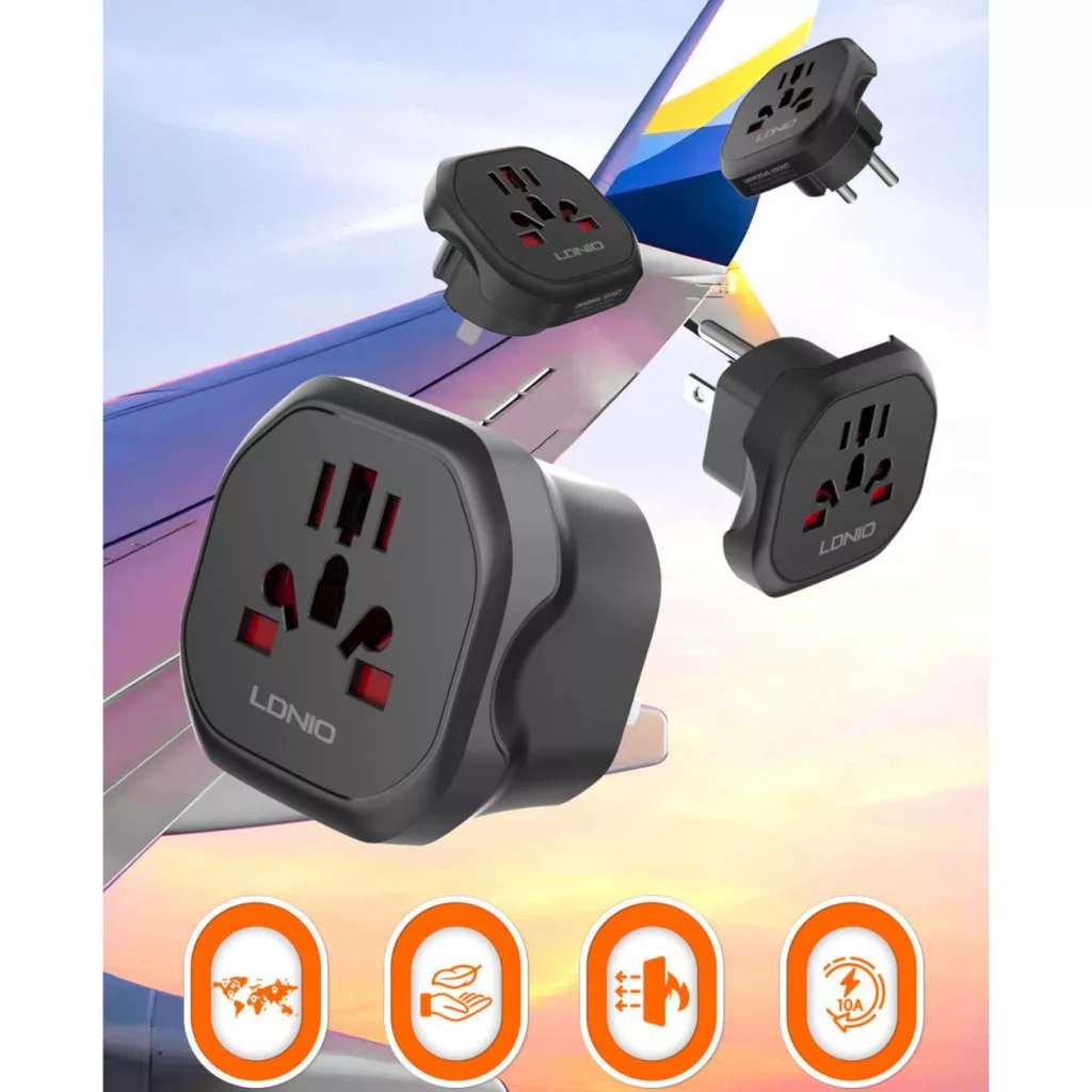 LDNIO® Univerzális utazó adapter, konnektor átalakító, EU-s aljzatba, EU/UK+AU+USA+CN csatlakozó, fekete
