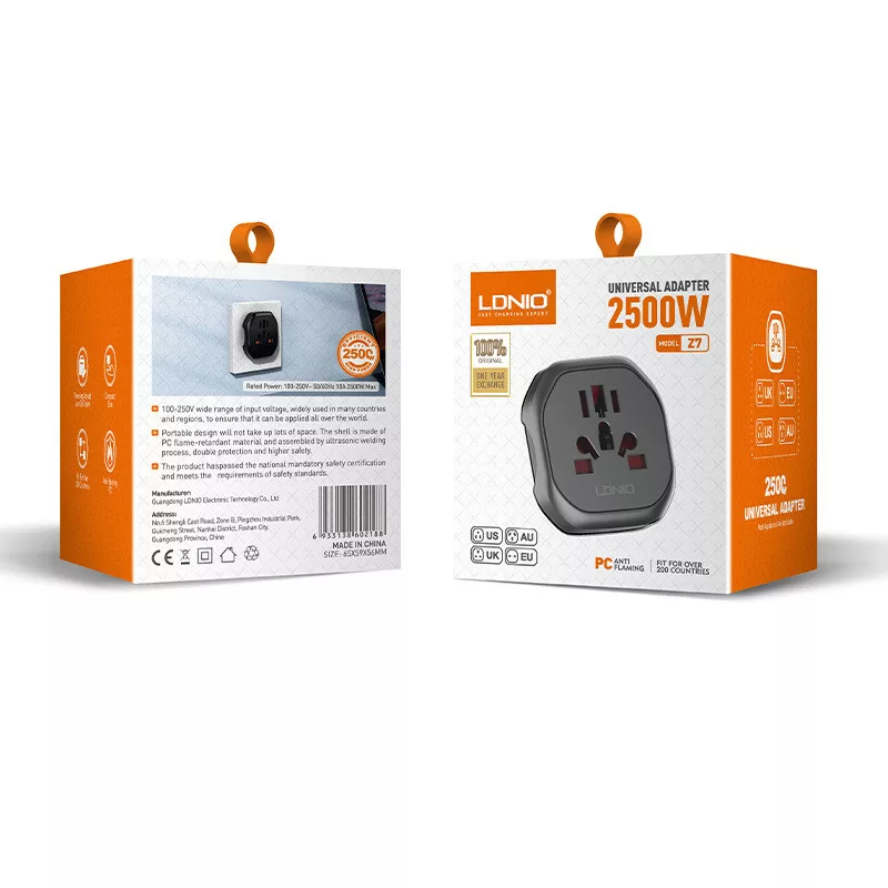 Az LDNIO® Z7 Univerzális Utazó és Konnektor Átalakító Adapter segítségével nyugodtan használhatja külföldről származó laptopját, telefontöltőjét, kameráját vagy egyéb eszközeit. Nélkülözhetetlen kiegészítője a legtöbb utazónak, akik szeretnék használni különböző országokból és kontinensekből származó eszközeiket.