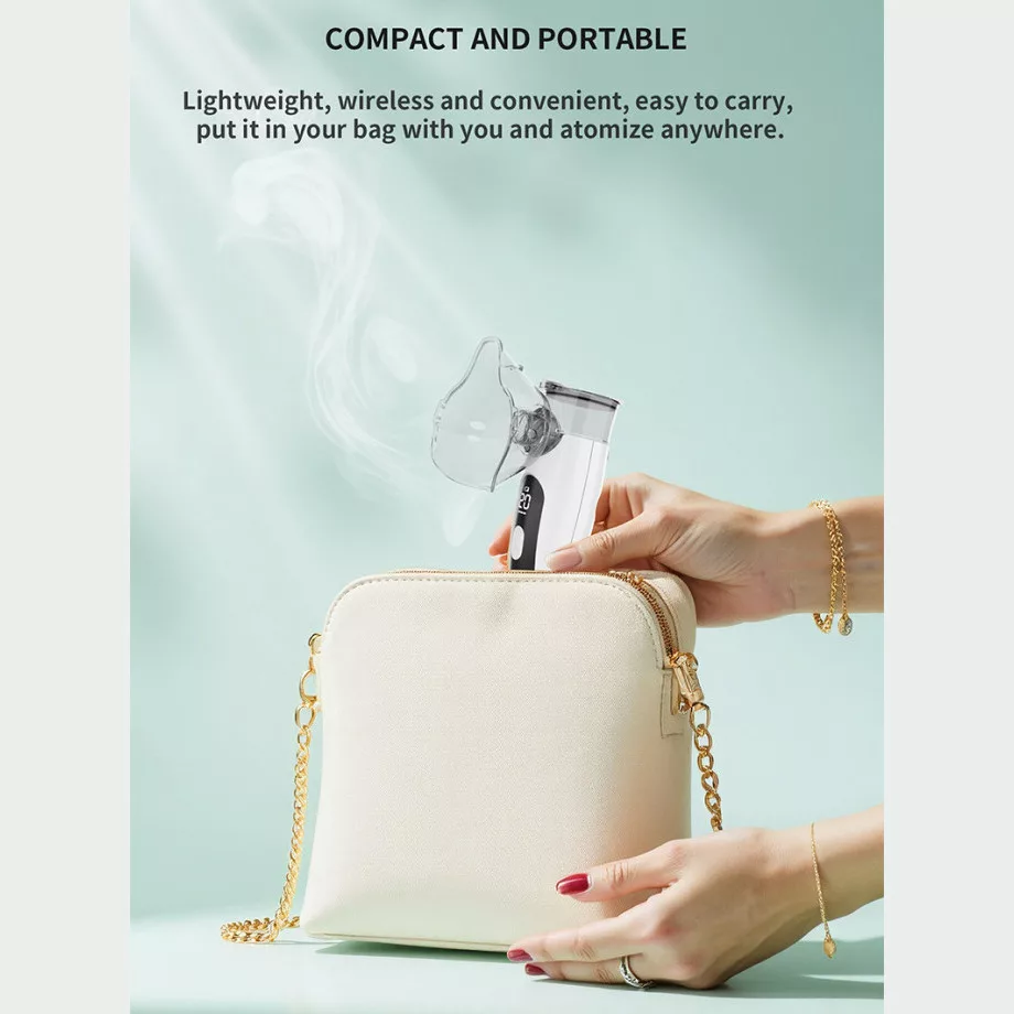 Hordozható és könnyű kialakítás: Kompakt mérete bármilyen táskában elfér, így ideális utazásokhoz, iskolába vagy munkahelyre. Könnyű szerkezete lehetővé, hogy az inhalátort mindig Önmagánál tarthassa. Legyen szó otthonról, munkáról vagy utazásról.