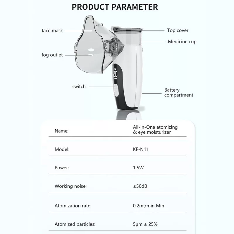 KE-W309 Ultrahangos Inhalátor egyesíti az inhalálás és szemnedvesítés előnyeit egyetlen, könnyen kezelhető készülékben. Csendes működésével és hordozható kialakításával minden korosztálynak kényelmes és megbízható megoldást nyújt.