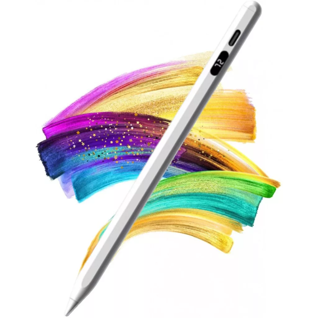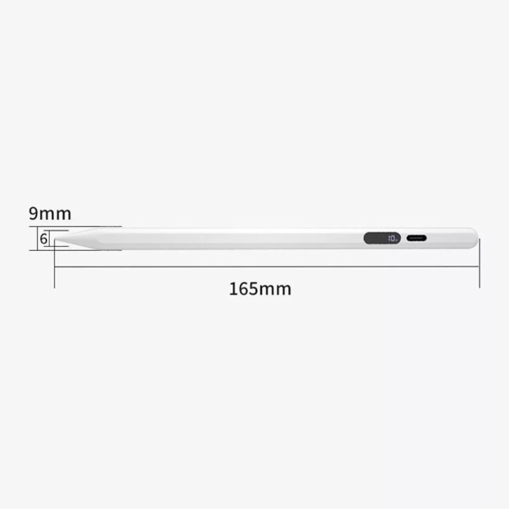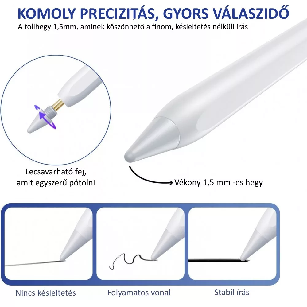 Univerzális Érintő Ceruza, Android/iPhone kompatibilis, telefon/tablet, tölthető, LCD akku szint kijelző, kapacitív hegy, fehér