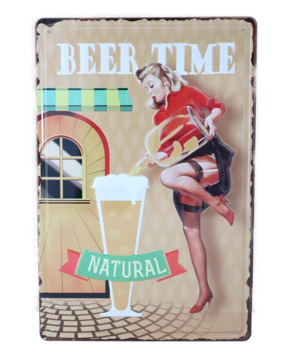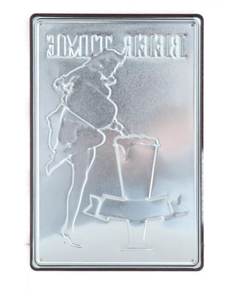Vintage Dekor Fémtábla, dombornyomott 'BEER TIME' felirat, retro hangulatú kialakítás, 20x30cm