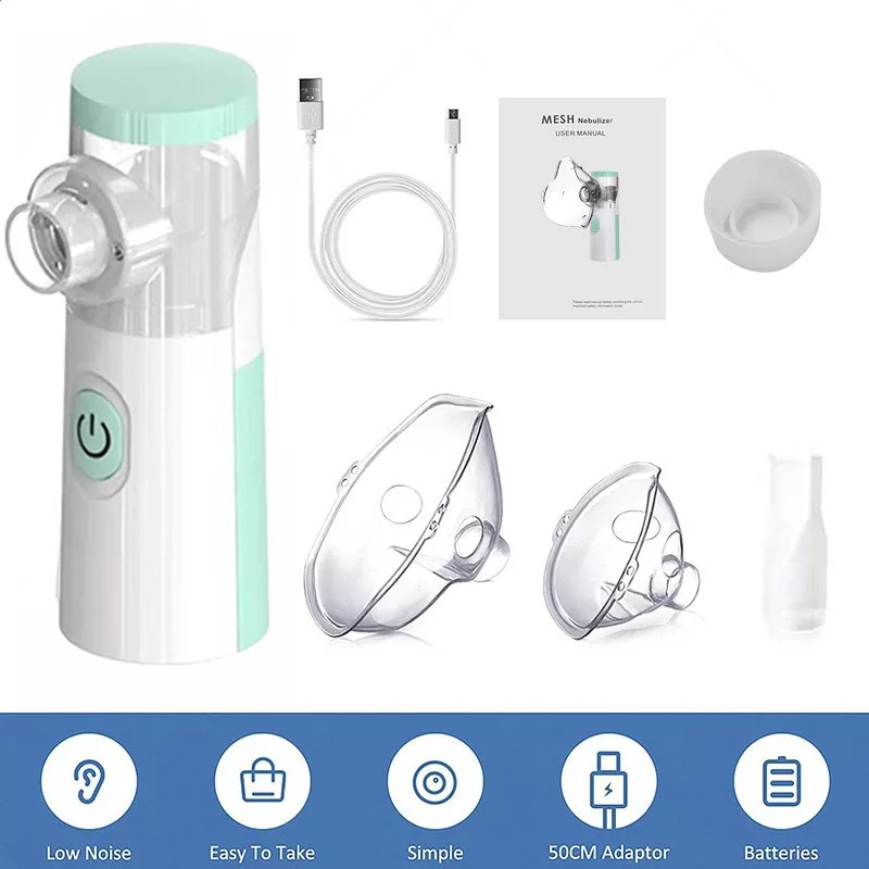 Univerzális ultrahangos inhalátor, hordozható, 3 fokozatba állítható, csendes működési mód, gyerek/felnőtteknek, fehér/zöld